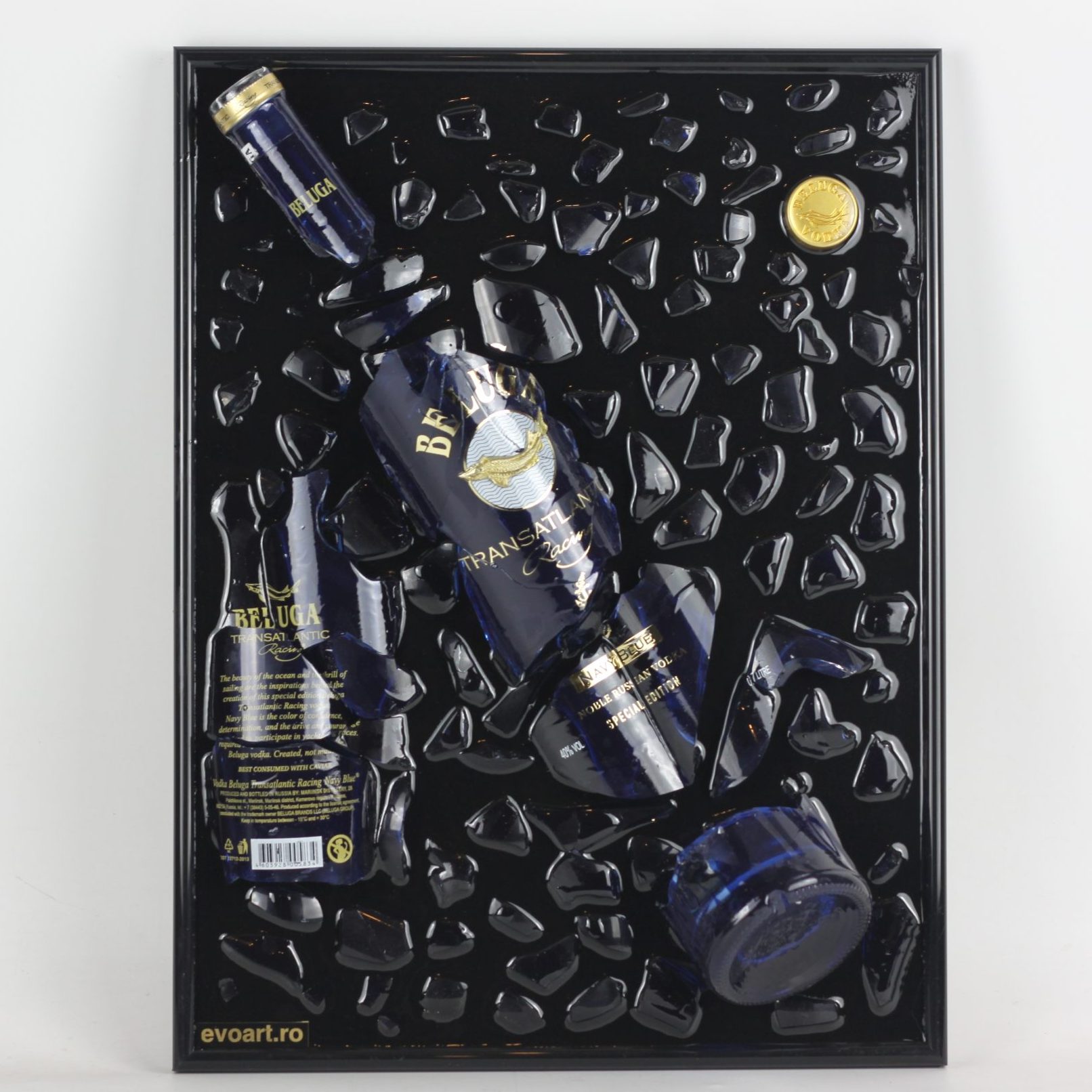Tablou din sticla de vodka Beluga Transatlantic Racing Navy Blue. Fiecare sticla are povestea ei in spate si fiecare tablou este unic.